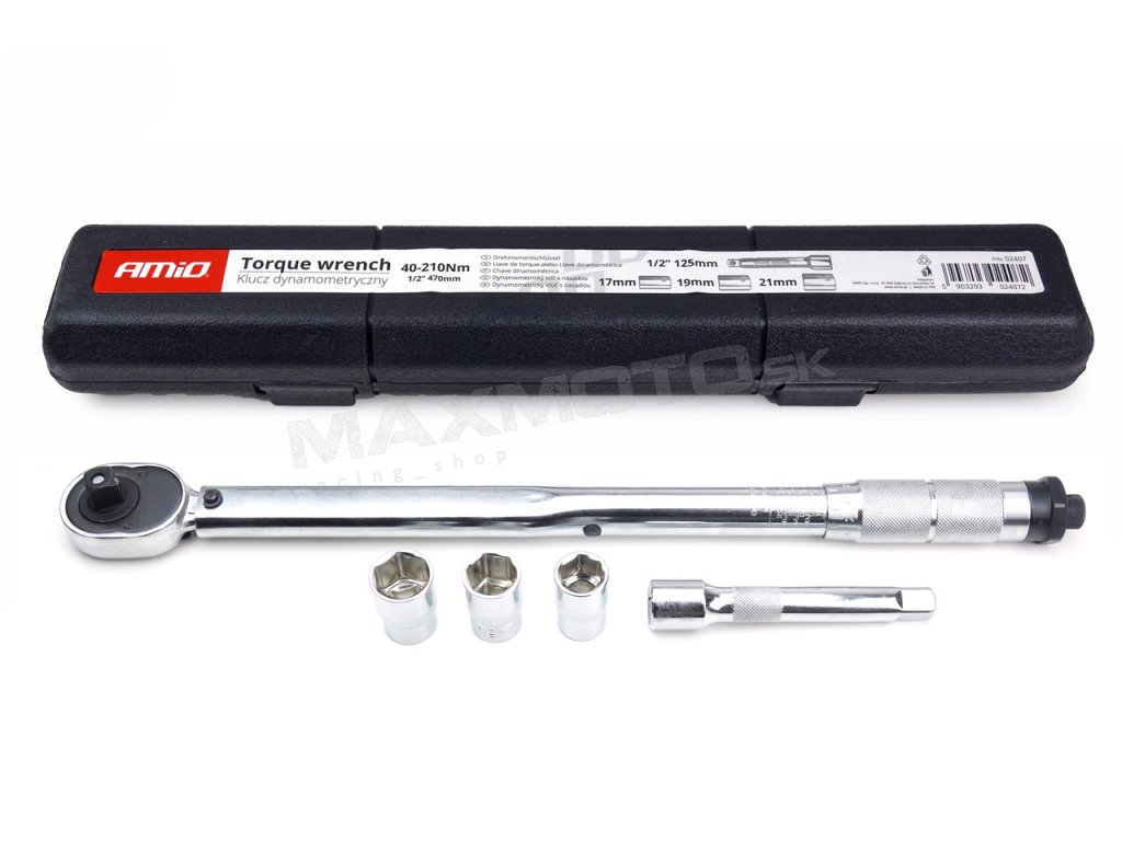 Dynamometrický kľúč s násadou AMIO, 40-210Nm - 17/19/21mm