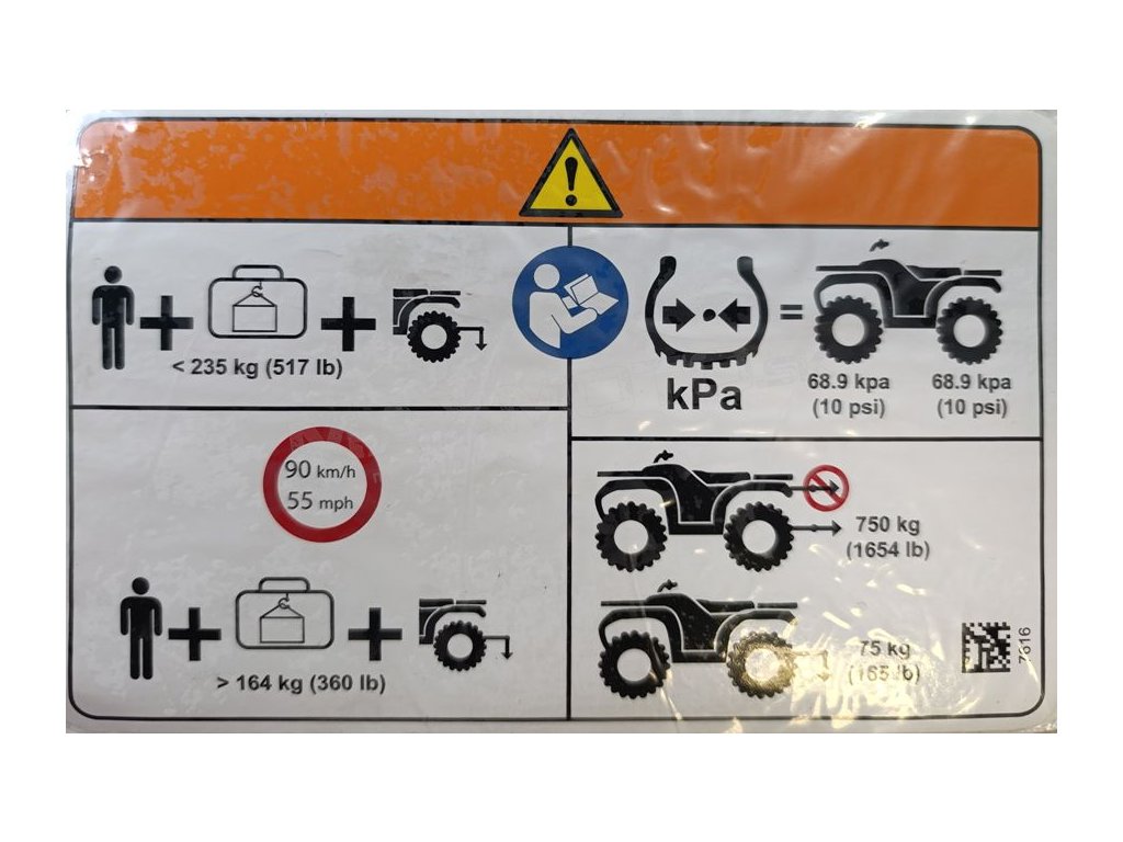 Výstražna nálepka tlaku v pneumatikách CAN-AM Outlander 650/ 850/ 1000, 19-24, 704907616