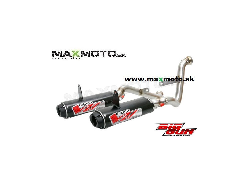 Výfukové systémy BIG GUN EVO UTILITY sú určené na dosiahnutie maximálneho výkonu a krútiaceho momentu v celom rozsahu otáčok. Sú zhotovené z rúrky z nehrdzavejúcej ocele a hliníkovej nádrže na tlmič výfuku. Tieto výfukové systémy sú oveľa ľahšie ako sériové výfuky. Elegantný dizajn umožňuje maximálnu vôľu, aby sa zabránilo tomu, že výfukový systém zasiahne brzdový strmeň zadnej brzdy.